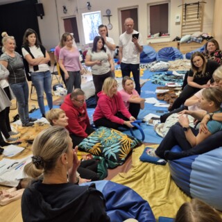 W dniach 1-2.12.2024 r. pod kierunkiem Eksperta Stymulacji Bazalnej ® Teresy Wysockiej nasza kadra uczestniczyła w kolejnym kursie pogłębiającym/ Autyzm Stymulacji Bazalnej ® koncepcji Profesora A. Fröhlich’a, na który tak czekaliśmy. Tym razem nabyliśmy uprawnień do stosowania konceptu w praktyce z wychowankami z autyzmem. W programie zawarte były aspekty propozycji stymulacji wibracyjnej i somatycznej, kreowaniem odpowiedniego otoczenia, uwarunkowania profesjonalnej, bazalnej relacji z osobami terapeutyzowanymi.