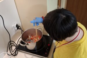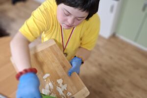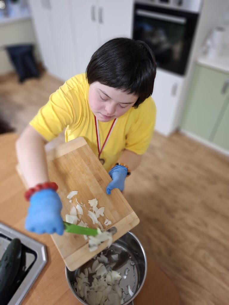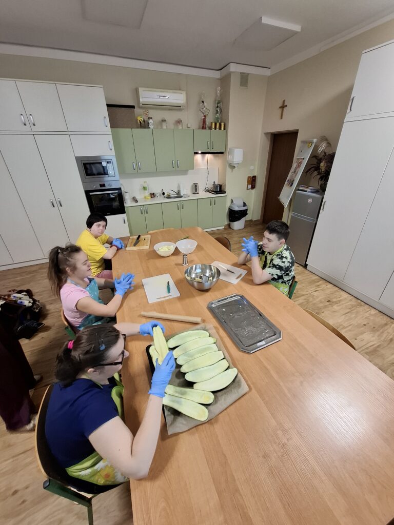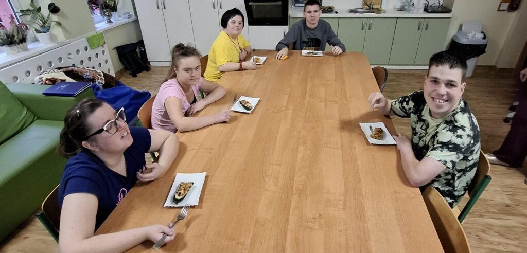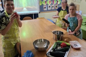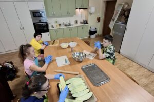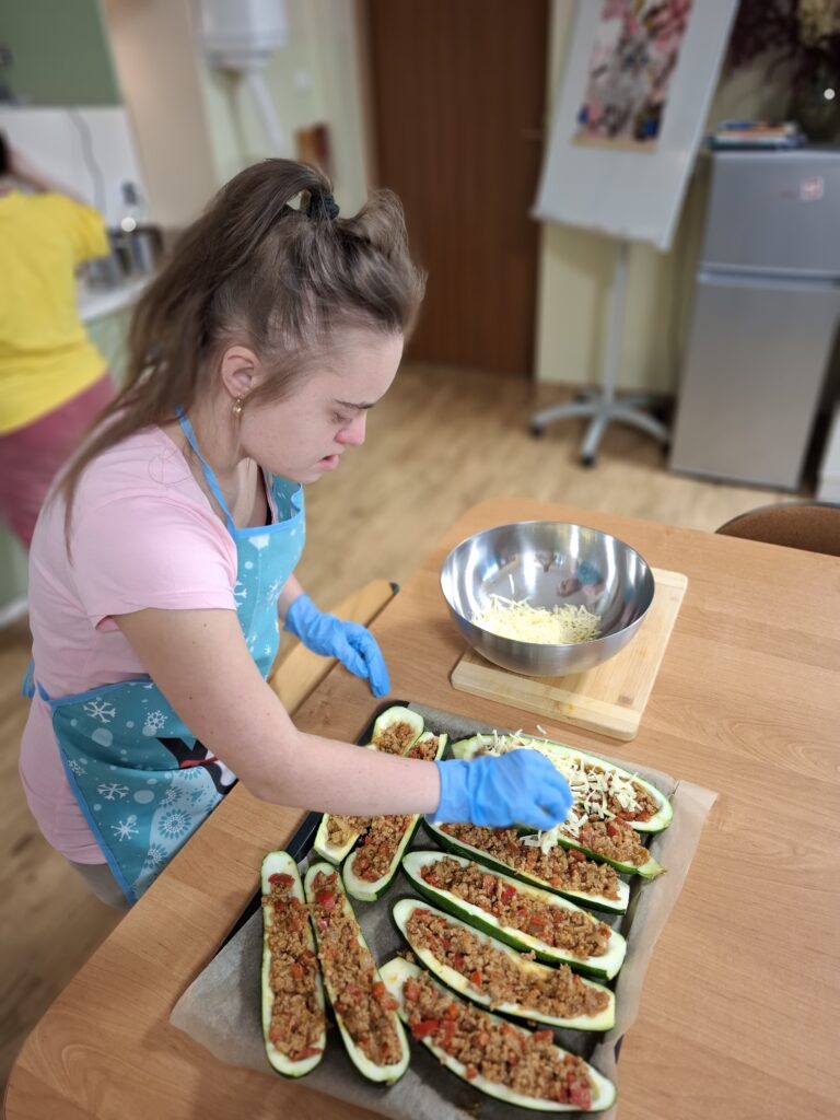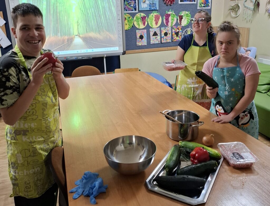 W ramach kulinarnych zajęć wychowankowie z V i VI oddziału PDP przygotowali cukinię faszerowaną mięsem i zapiekaną w piekarniku. Pracy było sporo, ale wszyscy zaangażowali się z ogromnym entuzjazmem. Efekt? Pyszne, aromatyczne danie, które zniknęło z talerzy w mgnieniu oka!