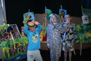 Z okazji Dnia Dziecka w naszej placówce odbyła się wyjątkowa zabawa integracyjna, której motywem przewodnim była DŻUNGLA! Dzieci wspaniale wcieliły się w rolę mieszkańców tropikalnego świata – wśród uczestników można było spotkać tygrysy, pandy, żyrafy, zebry i inne egzotyczne postacie.