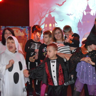 Któż nie chciałby choć przez chwilę zamienić się w postać niczym z horroru: potwora, czarownicę, ducha, czy inne straszydło?? Była ku temu okazja na kolejnej już w naszym ośrodku dyskotece Halloweenowej oraz konkursu na najpiękniejszą dynię w tematyce ,,Dyniowy domek,,. Nie zabrakło świetnej muzyki, dobrej zabawy i przekąsek. Wszyscy z zaangażowaniem przygotowali się do dyskoteki i zachwycali strojami.