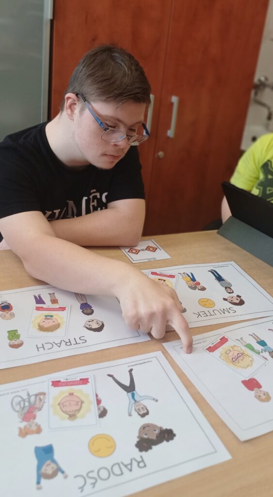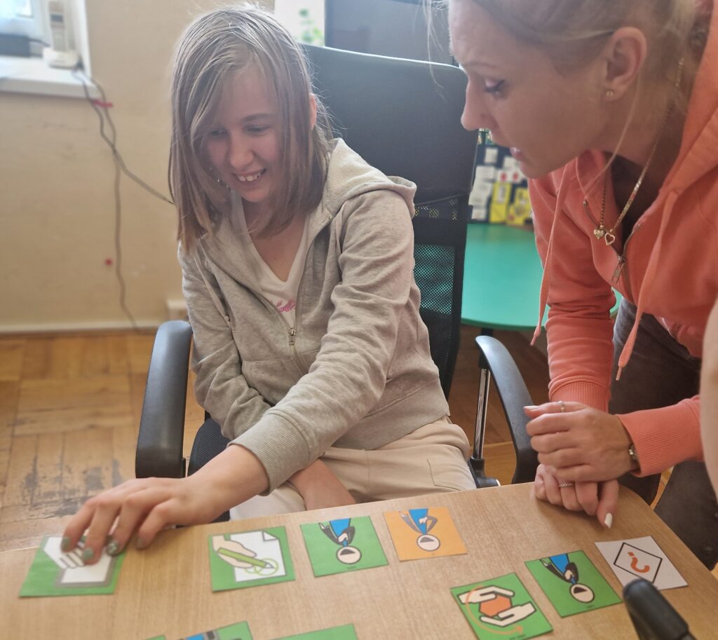 Podczas zajęć wychowankowie wykorzystywali symbole PCS przedstawiające emocje, cechy charakteru oraz zainteresowania. Wybierając te, które najlepiej je opisują, tworzyły własną „Mapę Supermocy”. Następnie, pracując w parach, opowiadały o sobie, wykorzystując tablice komunikacyjne i komunikatory.