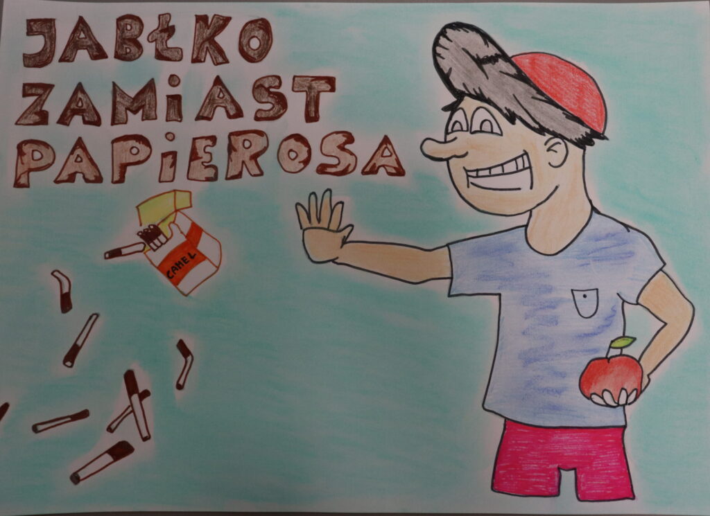 Zgodnie z naszą wieloletnią tradycją, również i w tym roku wzięliśmy aktywny udział w konkursie plastycznym pt. „Jabłko zamiast papierosa”. Wydarzenie to, będące częścią 14 Eventu dla Zdrowia, organizowane jest przez Starostwo Powiatowe w Olkuszu oraz Powiatową Stację Sanitarno-Epidemiologiczną w Olkuszu.