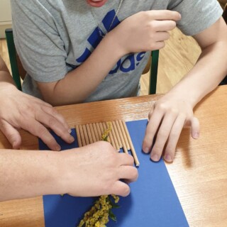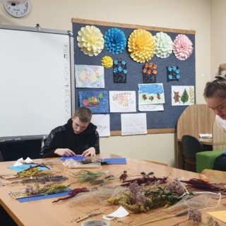 Zafascynowani pięknem jesiennego krajobrazu, postanowiliśmy zatrzymać cudowne jesienne kolory na dłużej… W tym celu zebraliśmy najpiękniejsze okazy jesiennych kwiatów i wykonaliśmy „Jesienne obrazki”. Ten typ zajęć wyzwala w nas pozytywne przeżycia, które dopingują nas do działania, rozwijają wyobraźnię i uaktywniają wszystkie funkcje twórcze. Uczymy się pomagania sobie nawzajem i współpracy. A nasze prace zdobią salę.