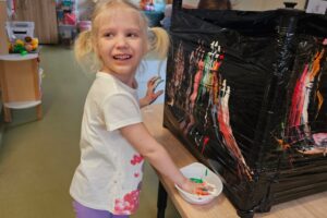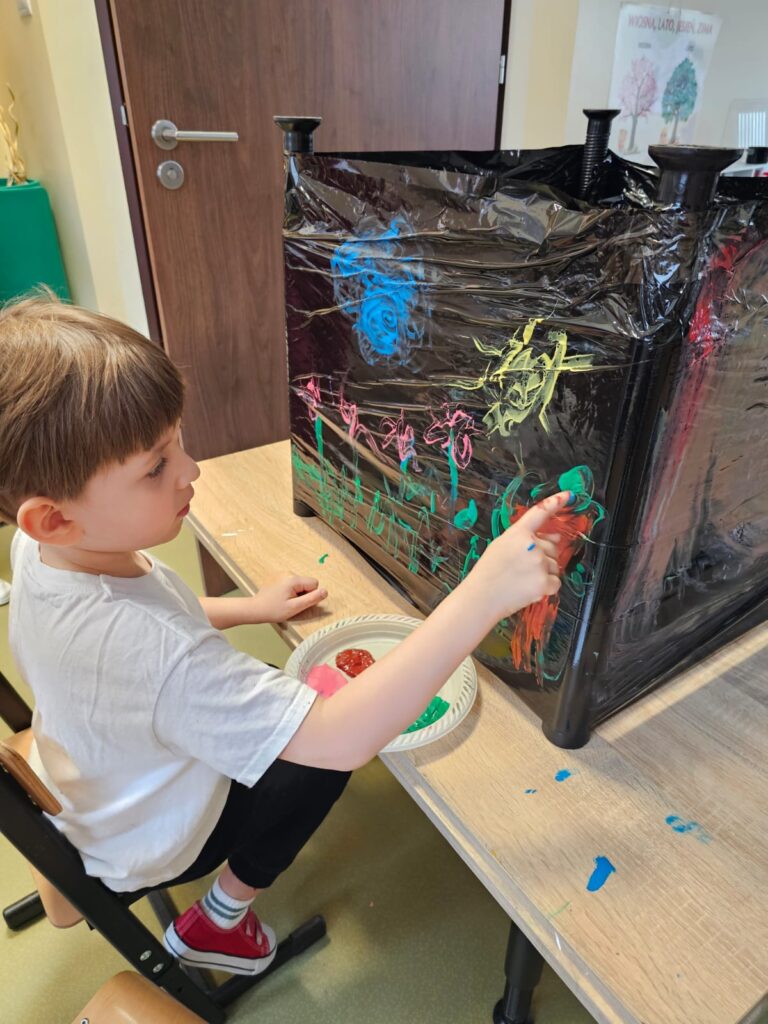 Dla postronnego obserwatora to „tylko” zabawa farbami, ale z punktu widzenia terapeutycznego to intensywny trening rozwojowy.