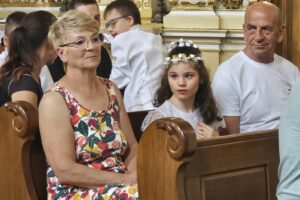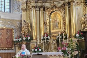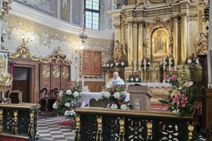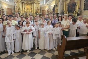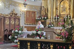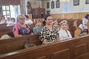 Dokładnie 23 czerwca – w Dzień Ojca, grupa dzieci i ich rodziców wyruszyła na szlak pielgrzymkowy. Na miejscu odbyła się uroczysta Msza Św. odprawiona przez naszego Proboszcza parafii Podwyższenia Krzyża Św. w Wolbromiu – Ks. Włodzimierza Wiechę, na której wszyscy otrzymali specjalne błogosławieństwo.
