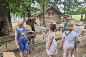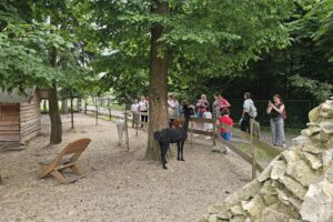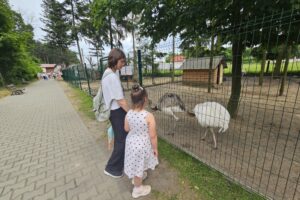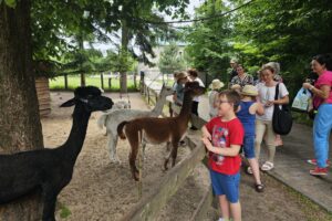 Po Mszy Św. zapoznaliśmy się z historią tego miejsca i zwiedzaliśmy wspaniałą „Arkę Noego” Ojców Paulinów opiekujących się tym wyjątkowym miejscem. Tam zachwycaliśmy się nie tylko alpakami, kozami i owieczkami, ale również kozami i owcami walliserskimi, marą patagońską, strusiem emu, kangurami, pawiami królewskimi czy surykatkami. Specjalną wolierę wybudowano także dla ptaków: papużek falistych, gołębi diamentowych, rozelli białolicej i przepiórek chińskich.