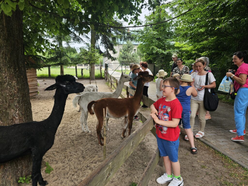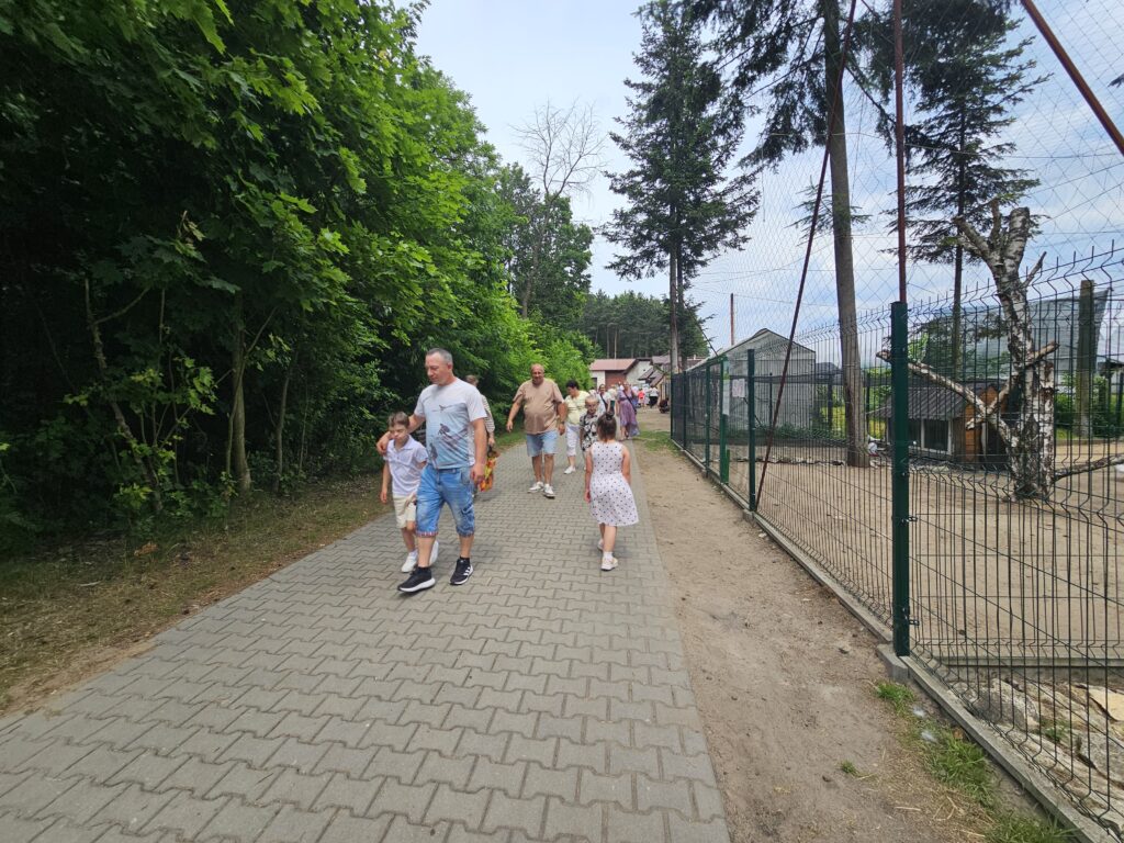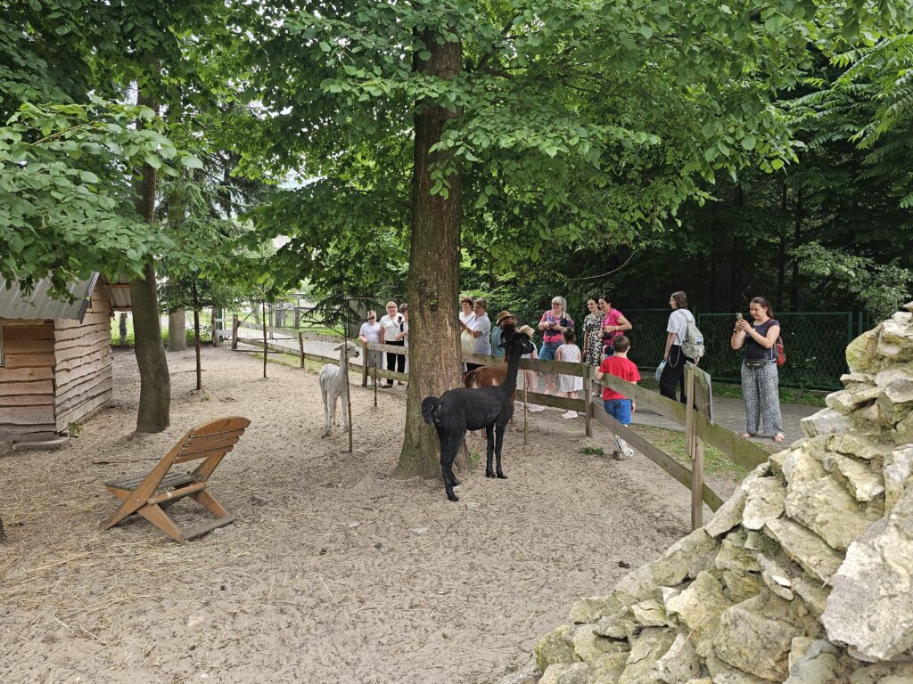 Po Mszy Św. zapoznaliśmy się z historią tego miejsca i zwiedzaliśmy wspaniałą „Arkę Noego” Ojców Paulinów opiekujących się tym wyjątkowym miejscem. Tam zachwycaliśmy się nie tylko alpakami, kozami i owieczkami, ale również kozami i owcami walliserskimi, marą patagońską, strusiem emu, kangurami, pawiami królewskimi czy surykatkami. Specjalną wolierę wybudowano także dla ptaków: papużek falistych, gołębi diamentowych, rozelli białolicej i przepiórek chińskich.