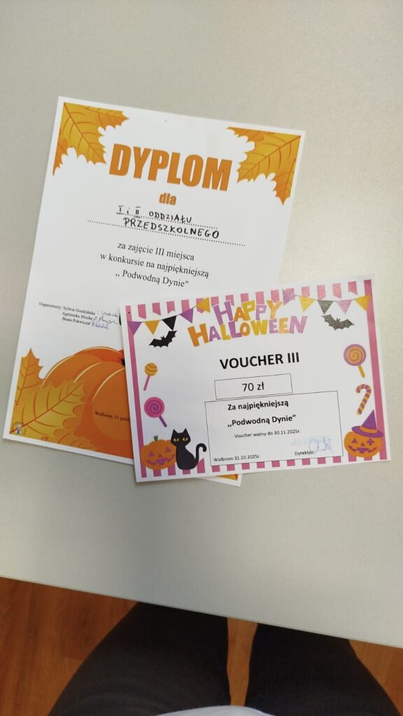 W ubiegłym tygodniu z wielką radością zrealizowaliśmy naszą nagrodę – bon za zajęcie 3. miejsca w konkursie na najpiękniejszą dynię!