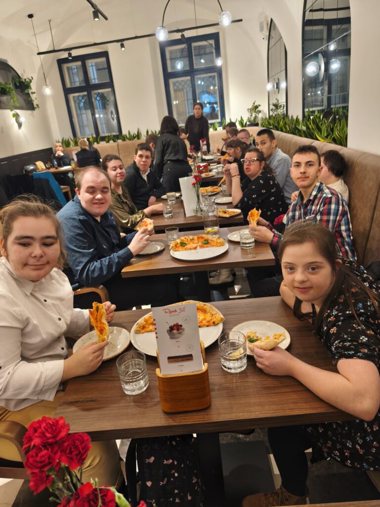Na finał – zasłużony relaks i integracja. Wszyscy razem usiedliśmy do pysznej pizzy, dzieląc się wrażeniami z całego dnia. Było smacznie, wesoło i bardzo rodzinnie.