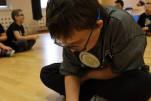 Dzieci z podziwem oglądały lśniące guziki i słynne czako z pióropuszem. To była żywa lekcja tradycji!