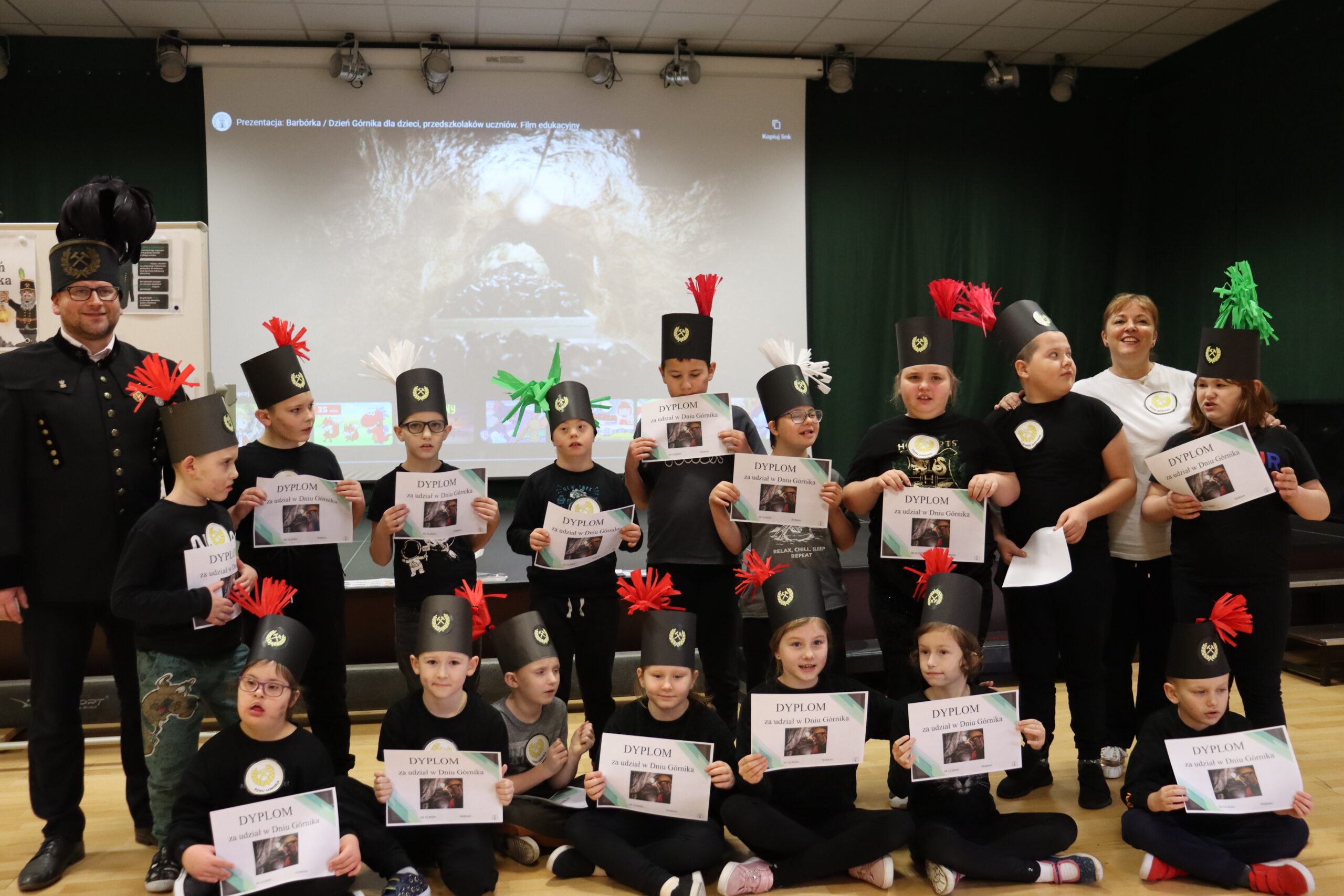 Oddziały edukacyjne I, II, III, IV oraz V oddział przedszkolny wspólnie świętowały Dzień Górnika.