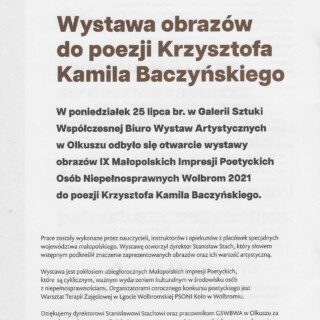 Urząd Miasta i Gminy w Wolbromiu - VIII Małopolskie Impresje Poetyckich Osób Niepełnosprawnych Wolbrom 2020
