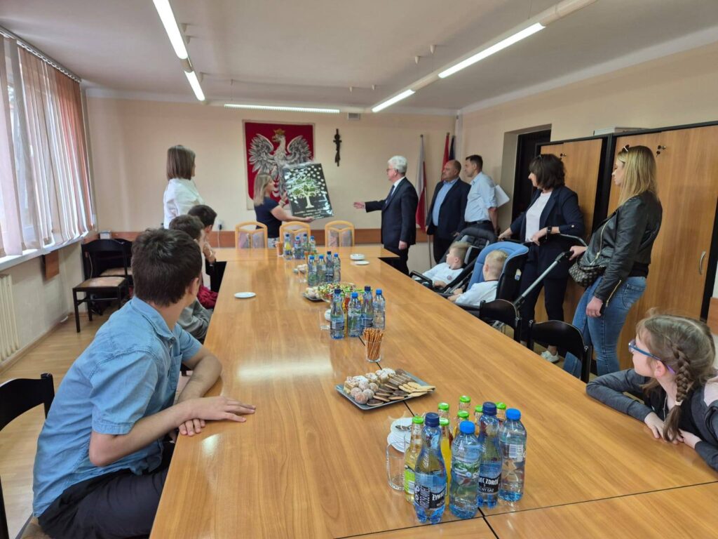 Na dzieci czekała również miła niespodzianka – poczęstunek oraz upominki przygotowane specjalnie na tę okazję. To gest, który sprawił uczestnikom wiele radości i uczynił wizytę jeszcze bardziej wyjątkową. Dzieci również podziękowały gospodarzowi wizyty, wręczając pamiątkowy obraz jako wyraz wdzięczności za życzliwe przyjęcie i poświęcony czas.