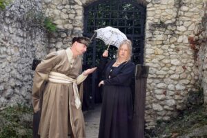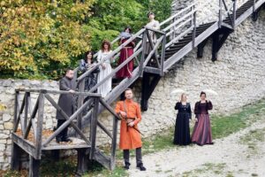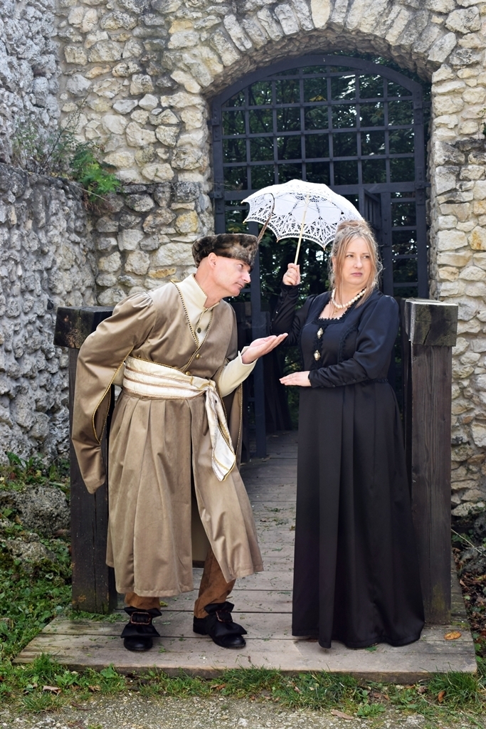Podczas sesji w Smoleniu uczestnicy wtz pozowali do zdjęć przybierając role bohaterów „Zemsty” Aleksandra Fredro. To komedia napisana w 1834r., której akcja rozgrywa się w starym zamku podzielonym między dwóch zwaśnionych sąsiadów. Spory o mur graniczny stają się pretekstem do komicznych kłótni i intryg. Jednocześnie rozwija się wątek miłosny, który jeszcze bardziej komplikuje konflikt między rodzinami. Głównym przesłaniem utworu jest wyśmianie kłótliwej szlachty i ich zaściankowych sporów. Komedia pokazuje również, że siła miłości może pogodzić nawet największych wrogów.