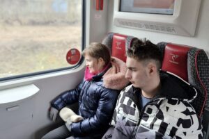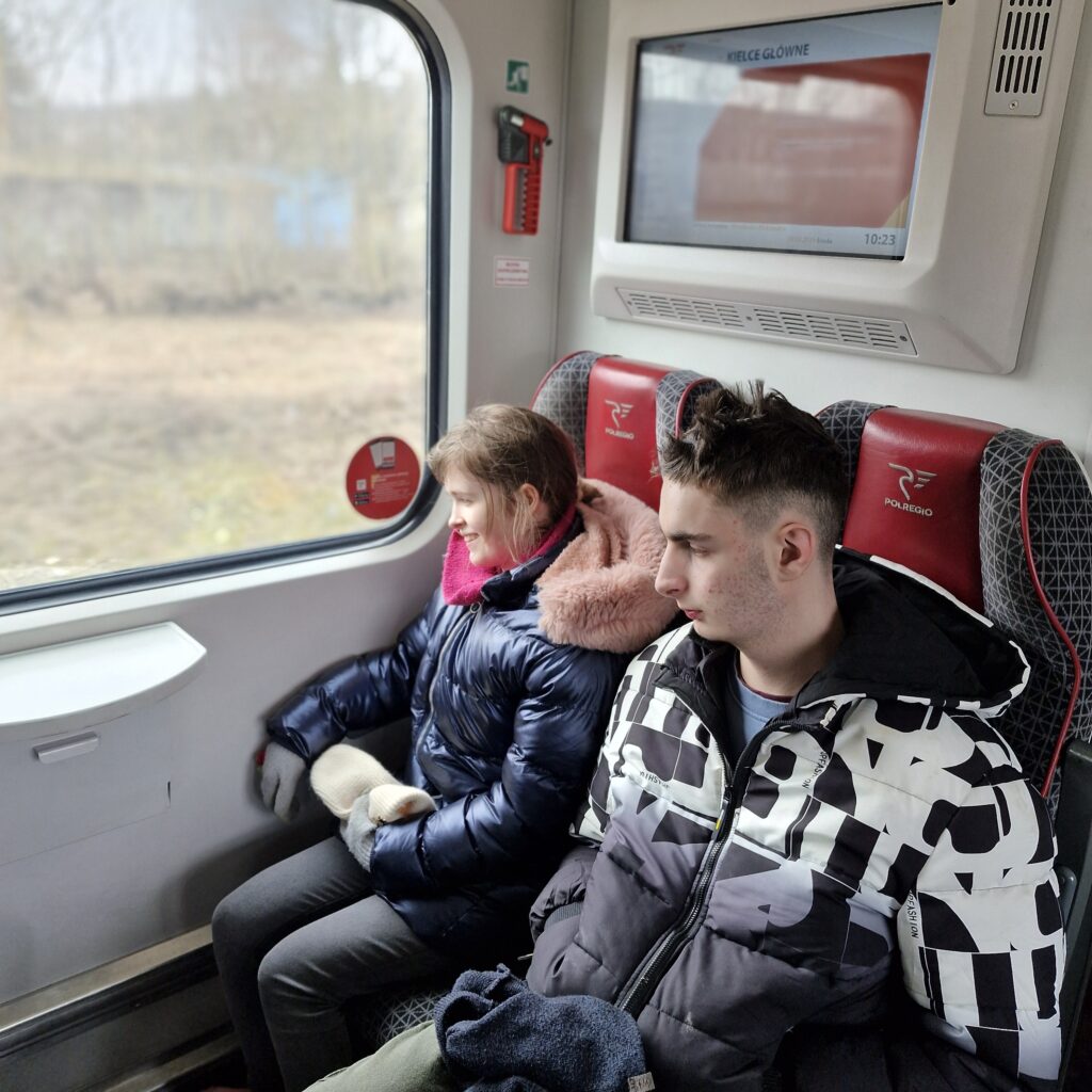 Nasza podróż nie trwała zbyt długo, ale wszyscy byliśmy bardzo podekscytowani patrząc przez szybę, podziwiając przyrodę i wszędzie otaczające nas pola uprawne, które widać było też już tęsknią za wiosną i ciepłem słońca.