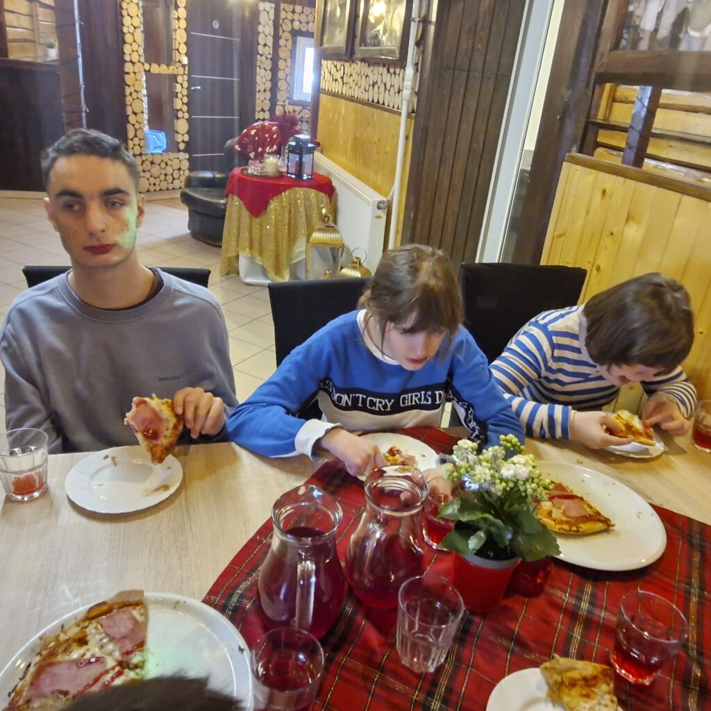 Po dojechaniu udaliśmy się do tamtejszej restauracji „Planeta”, gdzie czekała na nas zamówiona wcześniej pizza. Było to dla nas całkiem nowe doświadczenie, ale dzięki temu sami poznaliśmy omawiany wcześniej na zajęciach środek komunikacji miejskiej, jakim jest pociąg osobowy.