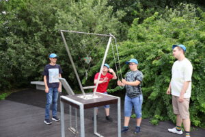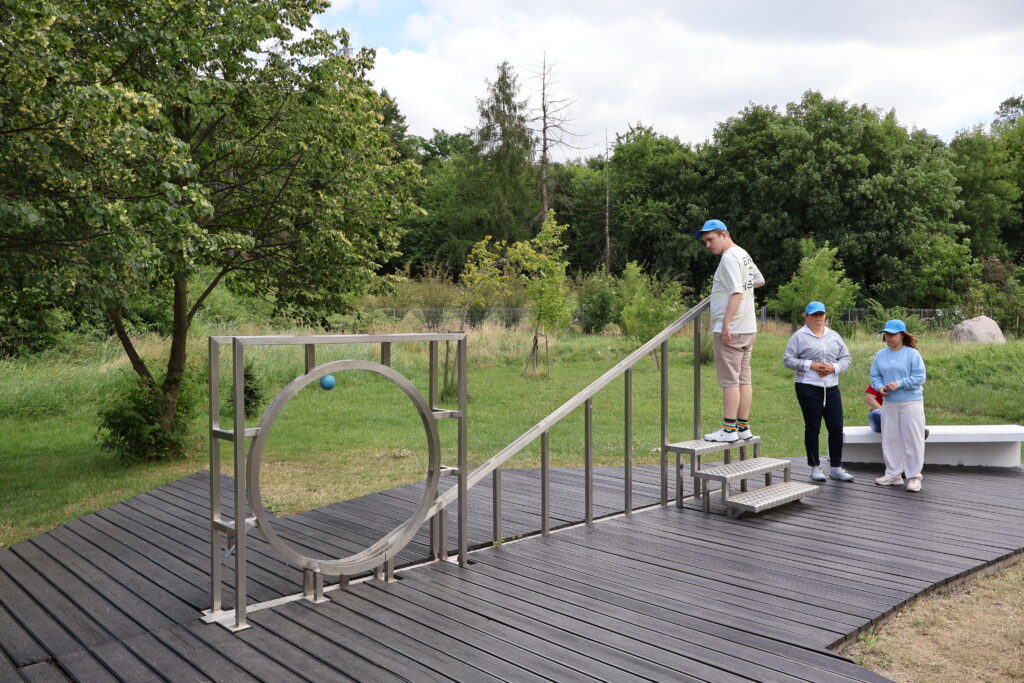 Ponad 100 urządzeń pozwalających na samodzielne odkrywanie praw fizyki i zjawisk przyrodniczych, możliwość nauki poprzez eksperymentowanie i interakcję z otoczeniem, Odlotowy plac zabaw”, “Naukowa siłownia”, “Piaskowa planeta” oraz “Geo-Gródek”, “Zapachowo” i “Lem-birynt”