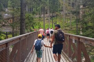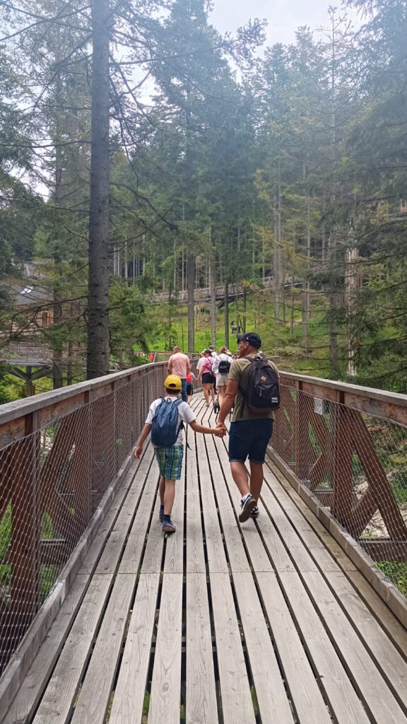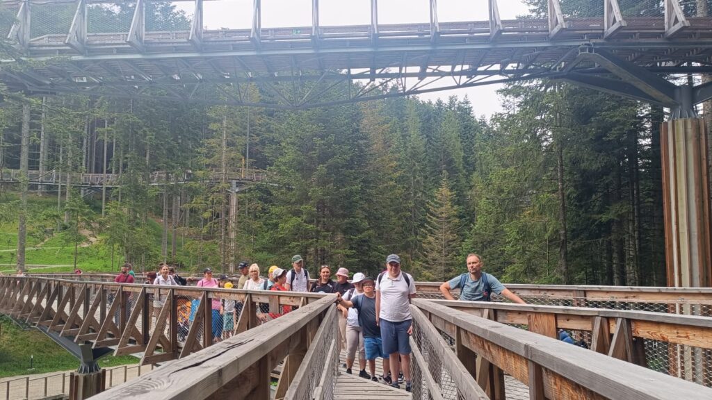 Kolejny dzień przywitał nas słońcem. Po obfitym śniadaniu ruszyliśmy na wyczekiwaną atrakcję jaką był wyjazd do centrum przyrodniczo – edukacyjnego Brama w Gorce. Widoki, które zastaliśmy na miejscu oraz wchodząc na najwyższy szczyt widokowy zapierały dech w piersiach. Byliśmy pod wielkim wrażeniem. Ekspozycje multimedialne, wielofunkcyjna sala kinowa, plac zabaw, zagroda z danielami oraz inne atrakcje znajdujące się na terenie obiektu dały możliwość wielozmysłowego poznania natury.