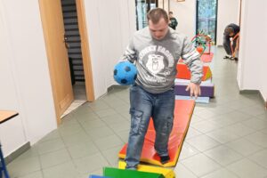 Szczególny nacisk kładziemy na trening równowagi i koordynacji, które odgrywają kluczową rolę u osób z niepełnosprawnością – pomagają w bezpiecznym poruszaniu się, poprawiają orientację w przestrzeni i dają większą pewność siebie podczas wykonywania codziennych czynności. Regularna aktywność wpływa również na rozwój siły mięśniowej, wytrzymałości i sprawności całego organizmu.