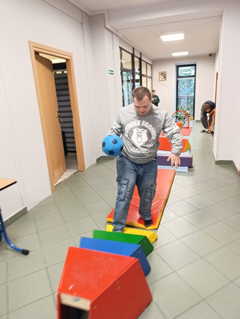 Szczególny nacisk kładziemy na trening równowagi i koordynacji, które odgrywają kluczową rolę u osób z niepełnosprawnością – pomagają w bezpiecznym poruszaniu się, poprawiają orientację w przestrzeni i dają większą pewność siebie podczas wykonywania codziennych czynności. Regularna aktywność wpływa również na rozwój siły mięśniowej, wytrzymałości i sprawności całego organizmu.