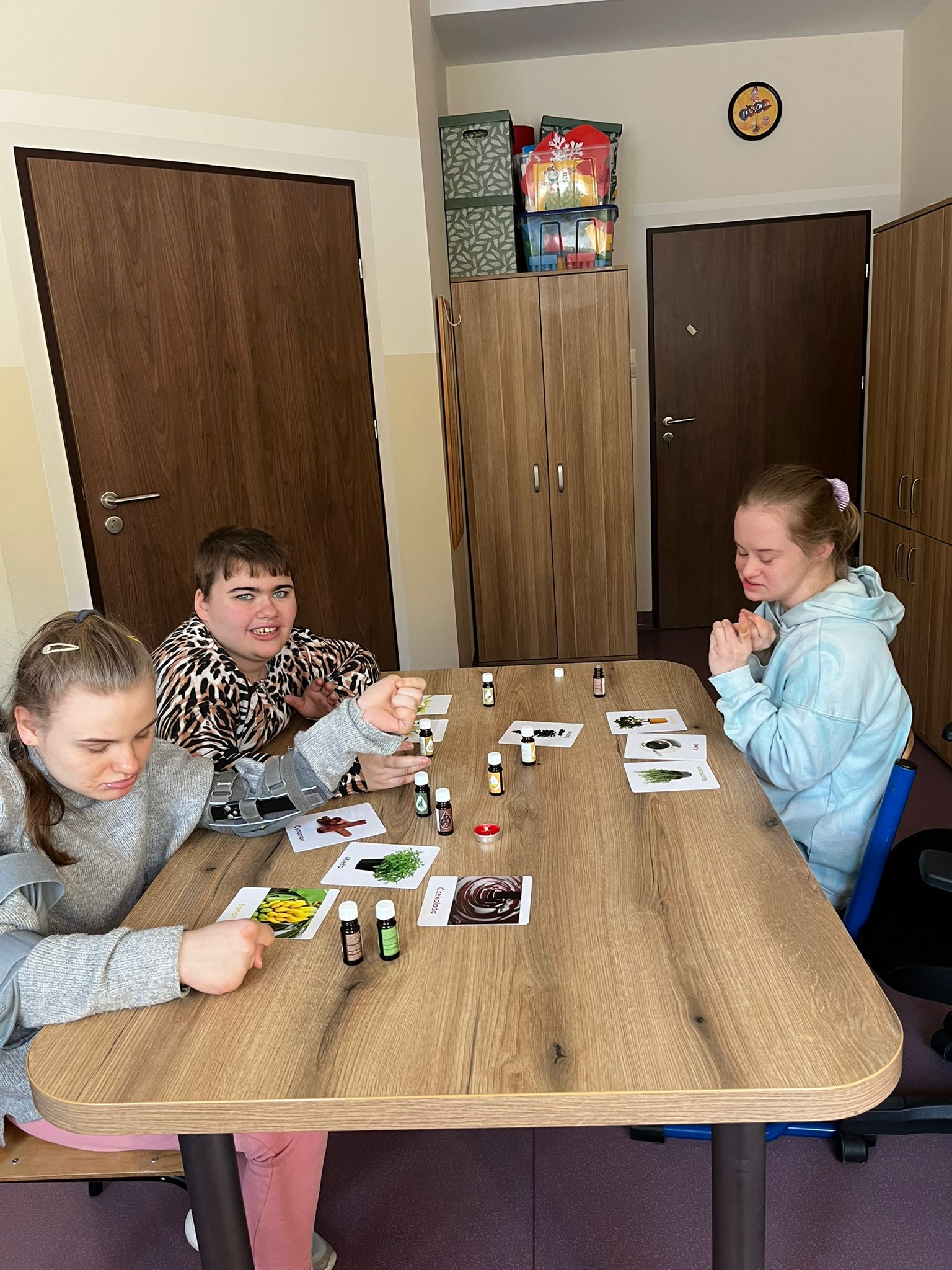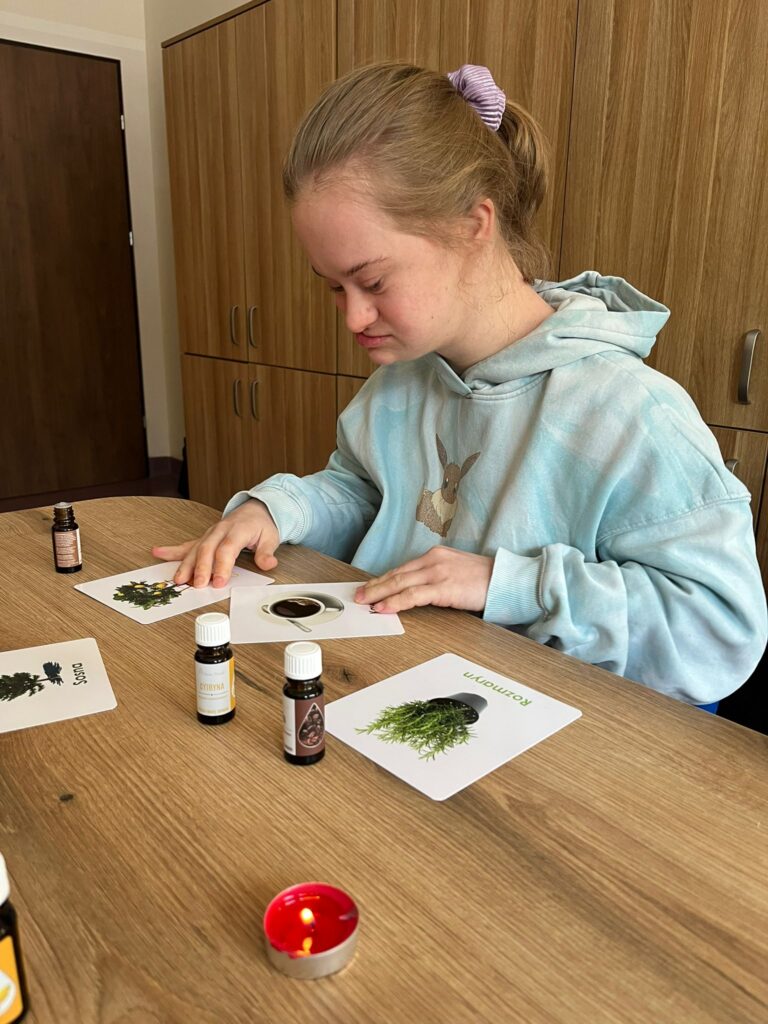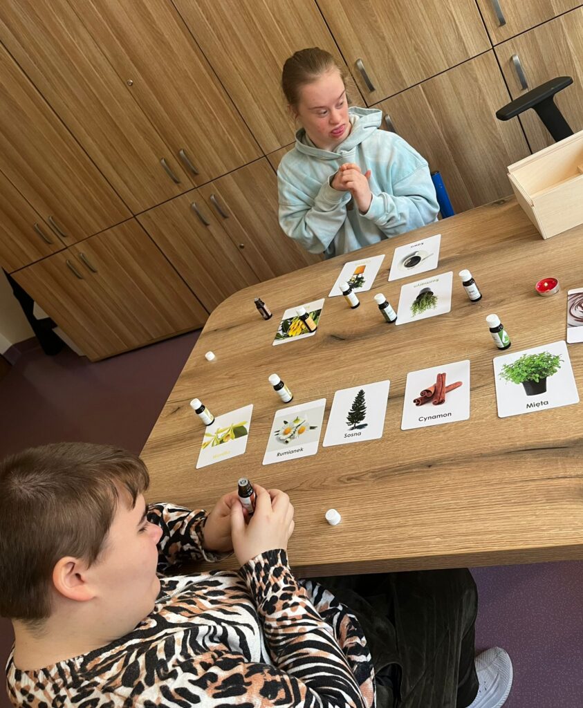 Dzisiejsze zajęcia z aromaterapii upłynęły pod znakiem spokoju i budowania przyjaznej atmosfery. W pracy z naszymi wychowankami wykorzystaliśmy dobroczynne właściwości naturalnych olejków eterycznych: sosny, cynamonu, wanilii oraz cytryny. Wybrane zapachy nie tylko wypełniły salę pięknym aromatem, ale przede wszystkim wspomogły proces relaksacji i łagodzenia stresu.
