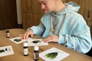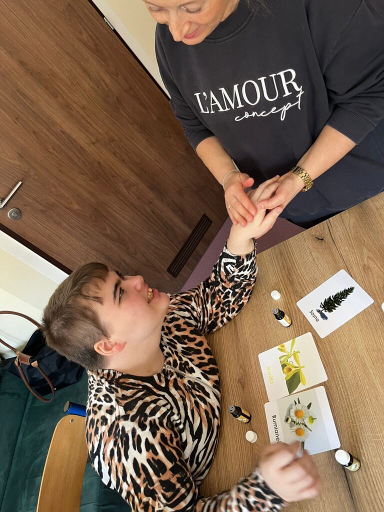 Terapię zapachem: poznawanie aromatów sprzyjających wyciszeniu.