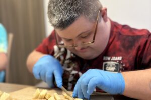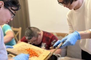 Przygotowanie tak wieloskładnikowego dania to doskonały sprawdzian uważności i organizacji. Uczestnicy samodzielnie planowali etapy pracy: od obróbki termicznej warzyw, przez precyzyjne krojenie, aż po finalne doprawienie potrawy. Tego typu treningi mają na celu przygotowanie naszych podopiecznych do jak najbardziej niezależnego funkcjonowania w przyszłości.