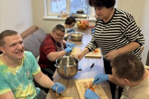 W naszych mieszkaniach treningowych zapachy domowego obiadu to codzienność, która skrywa w sobie niezwykle ważny proces terapeutyczny. Ostatnie zajęcia upłynęły pod znakiem kulinarnej klasyki – wspólnie z uczestnikami przygotowaliśmy tradycyjną sałatkę jarzynową.