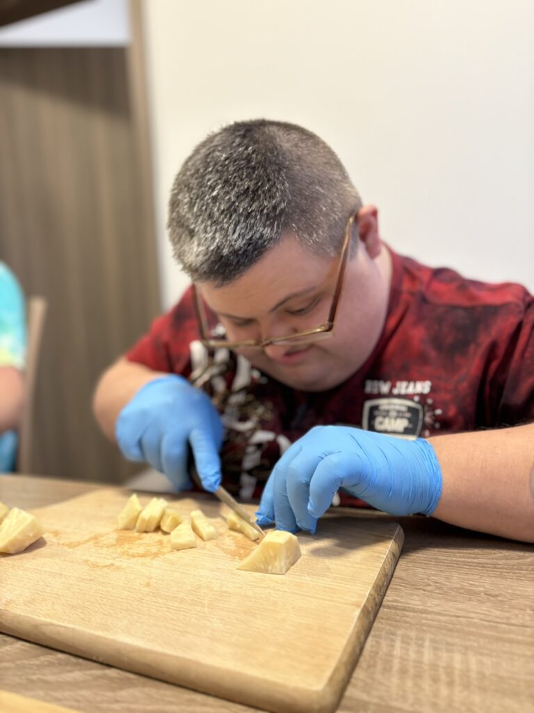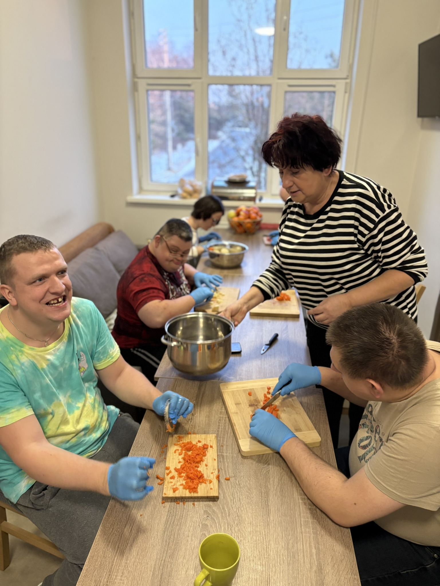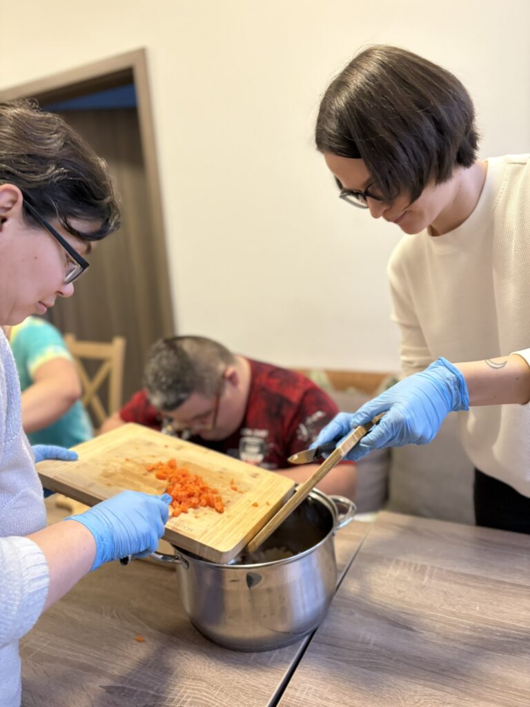 Przygotowanie tak wieloskładnikowego dania to doskonały sprawdzian uważności i organizacji. Uczestnicy samodzielnie planowali etapy pracy: od obróbki termicznej warzyw, przez precyzyjne krojenie, aż po finalne doprawienie potrawy. Tego typu treningi mają na celu przygotowanie naszych podopiecznych do jak najbardziej niezależnego funkcjonowania w przyszłości.