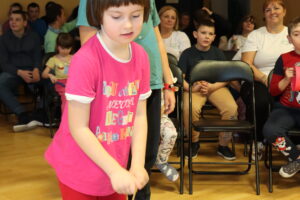 Spotkanie było bogate w aktywność fizyczną – każde ćwiczenie było pretekstem do ruchu i swobodnego wyrażania siebie poprzez taniec. Tego typu zajęcia są niezwykle cenne w rozwoju: