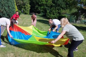 W ramach projektu „Terapia poprzez aktywność w Zespole Rehabilitacyjno-Terapeutycznym” łączymy naukę, ruch i kreatywność. Zajęcia mają luźną, przyjazną formę i są dostosowane do możliwości naszych beneficjentów. Podczas spotkań edukacyjno-poznawczych oraz ruchowo-kreatywnych z elementami jogi beneficjenci rozwijają ciekawość świata, ćwiczą pamięć, koncentrację i myślenie – w praktyczny i angażujący sposób poprzez rozmowy, gry, zadania i wspólne działania.