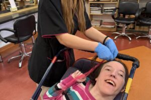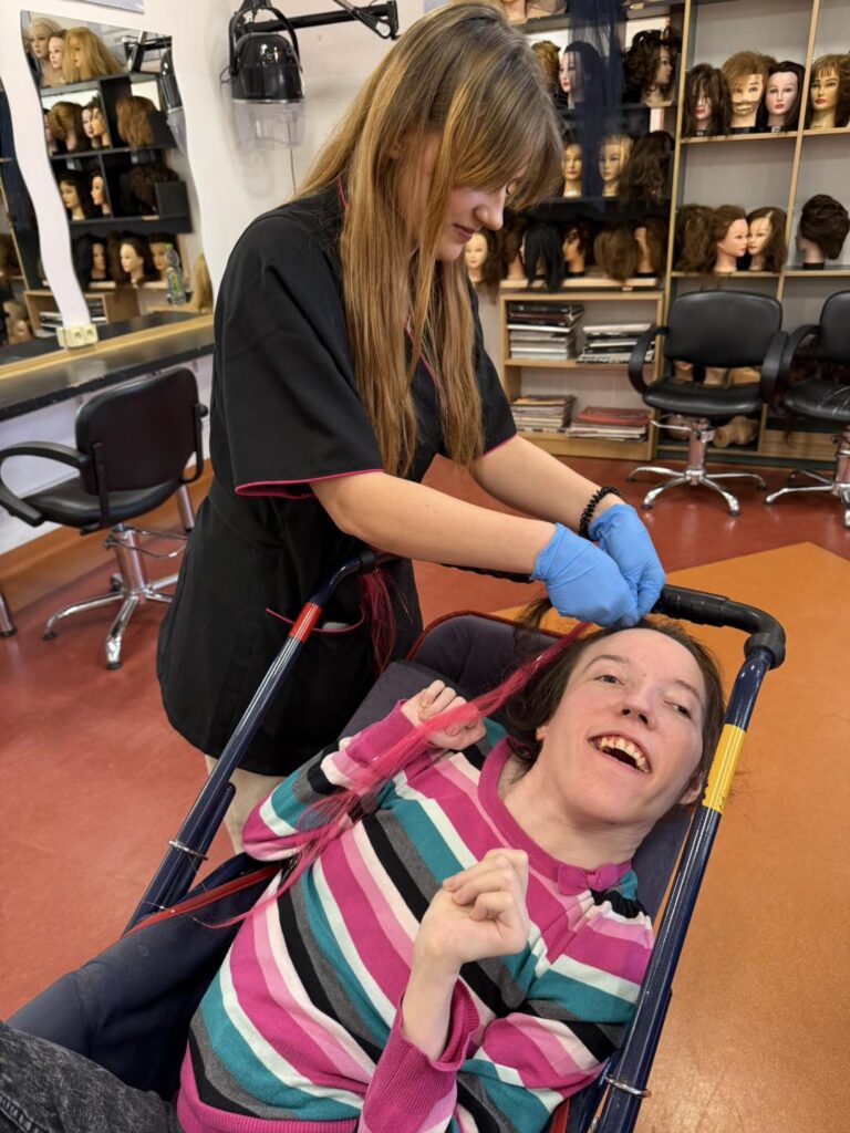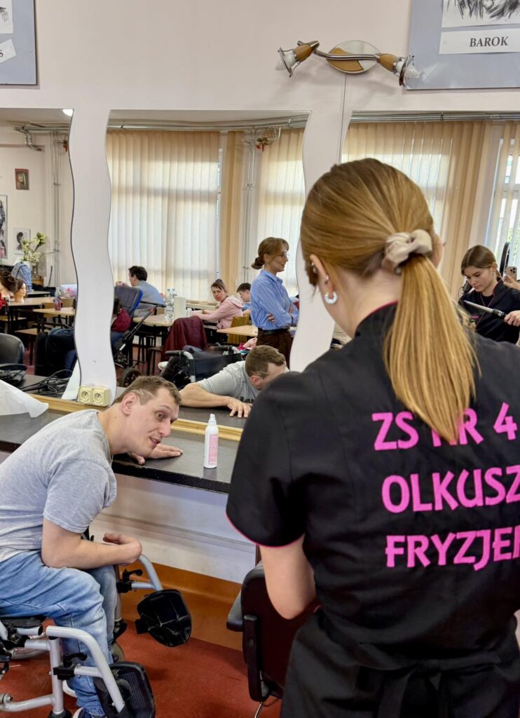 W ostatnim czasie nasi uczestnicy ze Środowiskowego Domu Samopomocy mieli wyjątkową okazję odwiedzić progi Zespołu Szkół nr 4 w Olkuszu. Celem wizyty był udział w profesjonalnych warsztatach fryzjerskich, przygotowanych przez uczennice II klasy o profilu fryzjerskim.