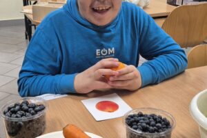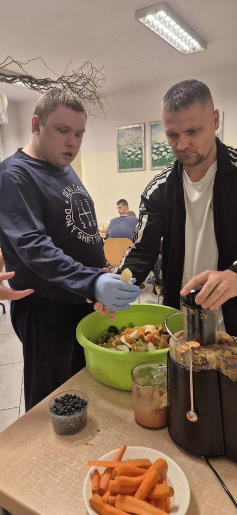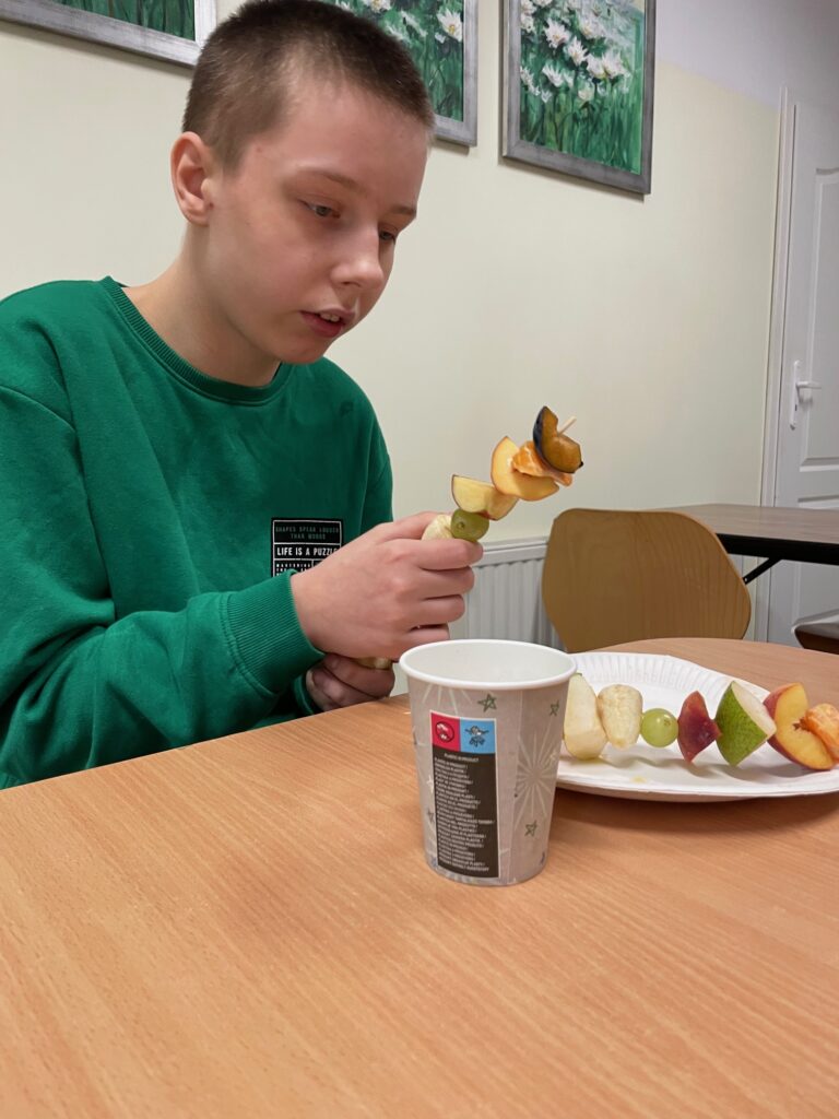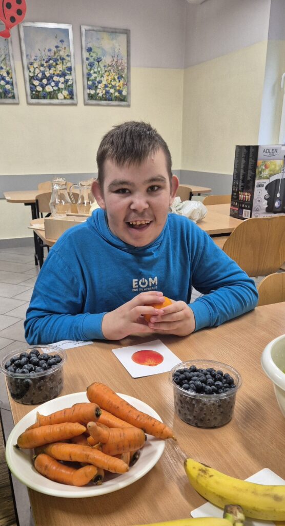 Zajęcia przebiegały w niesamowicie radosnej atmosferze i z ogromnym zaangażowaniem!  Każdy mógł włączyć się w działania na miarę swoich możliwości: dotykać, wybierać składniki, obserwować proces przygotowywania, a na koniec – co najważniejsze – wspólnie skosztować przygotowanych pyszności!