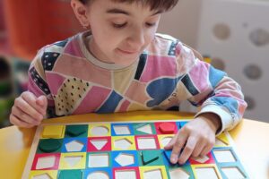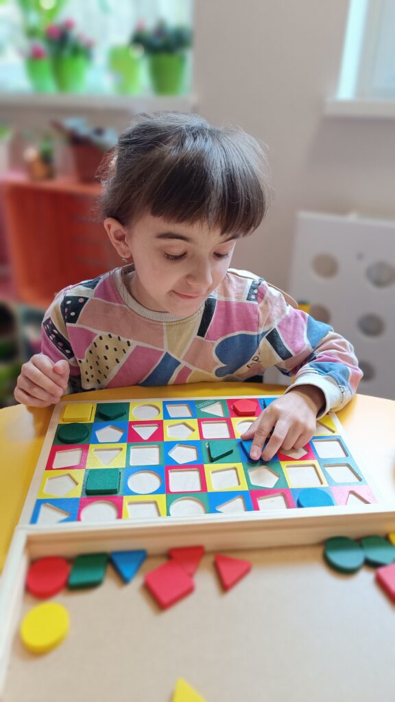 Percepcja wzrokowa i logiczne myślenie: Segregowanie i dopasowywanie kształtów pozwoliło utrwalić wiedzę o barwach i figurach.