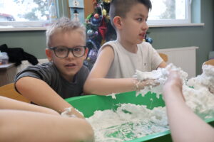 W ramach Projektu „Wsparcie terapeutyczne w Placówce Wsparcia Dziennego OTWARTE DRZWI” nasi beneficjenci zamienili się w małych chemików i postawiliśmy na sensoplastykę!