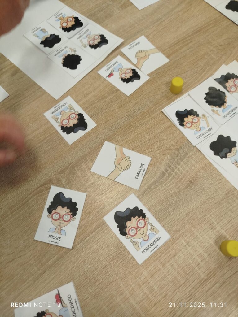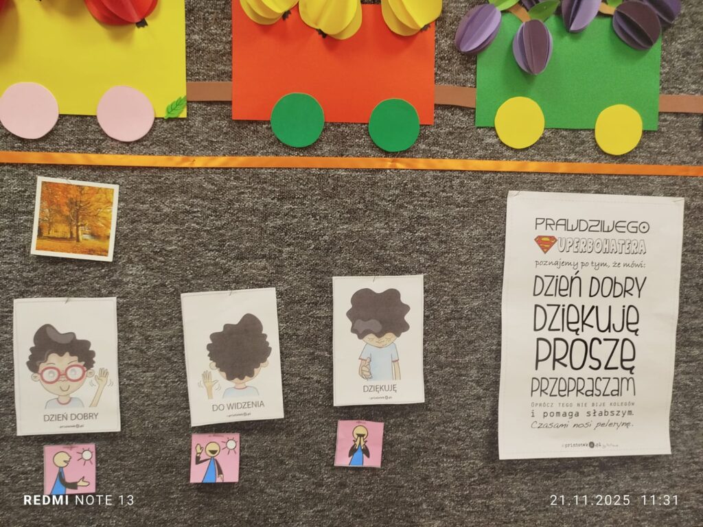 Lekcja dobrych manier i gestów Podczas dzisiejszych zajęć przedszkolaki poznawały i utrwalały podstawowe zwroty życzliwości. Rozmawialiśmy o tym, jak wielką moc ma zwykłe “dzień dobry”, przyjazny gest czy uśmiech posłany koledze. Dzieci uczyły się, że bycie miłym to postawa, która sprawia, że świat wokół nas staje się lepszy.