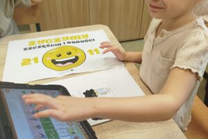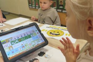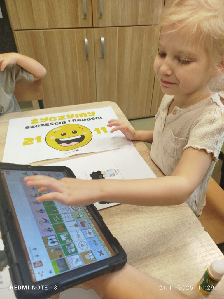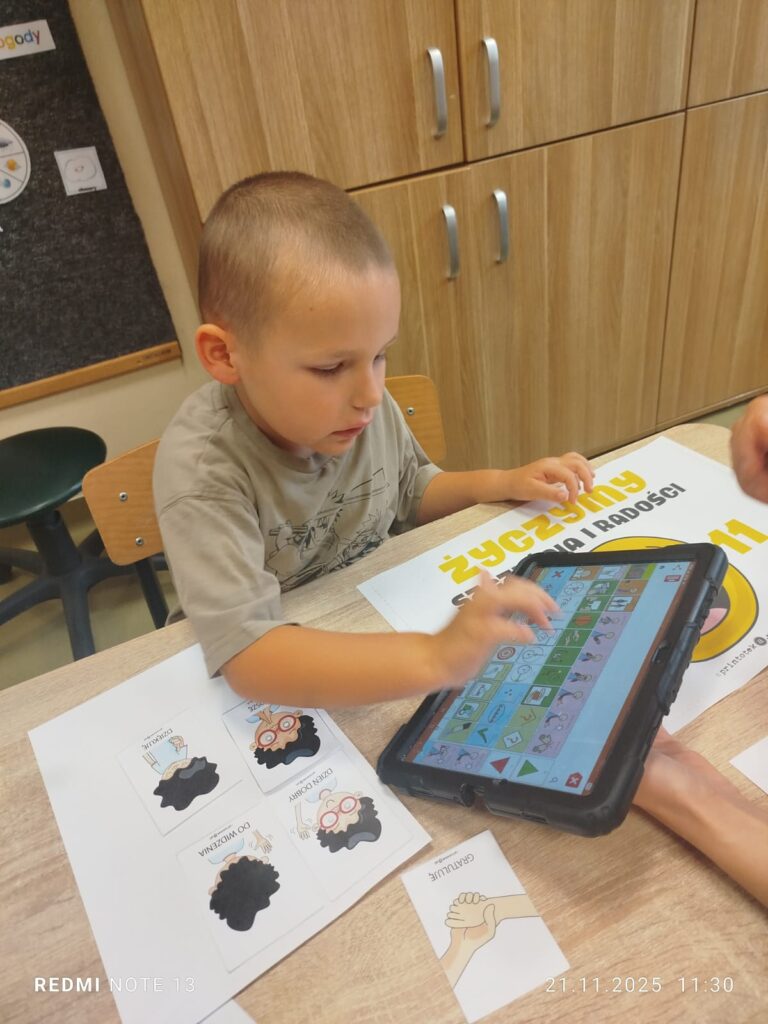 Kluczowym elementem dzisiejszego dnia było wykorzystanie komunikacji alternatywnej i wspomagającej (ACC). Nasi podopieczni korzystali z tabletów z oprogramowaniem Mówik.